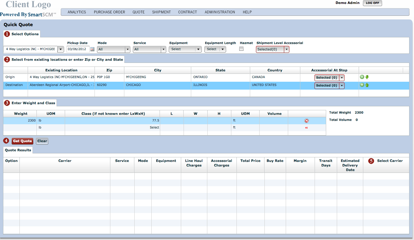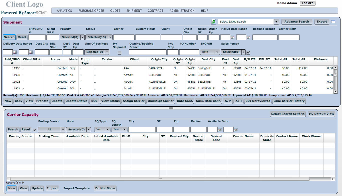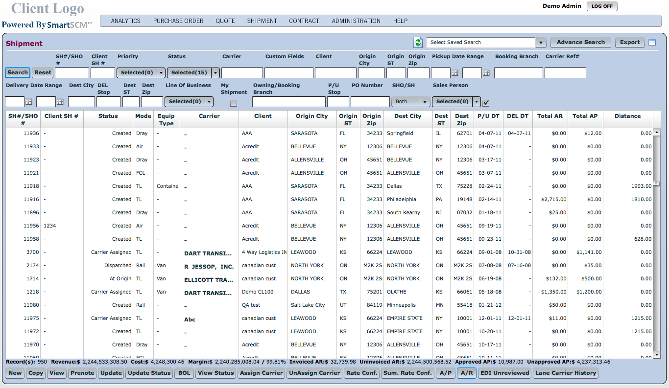 Global: You may quote, plan and execute shipments of any mode of transportation TL, LTL, Air, FCL, LCL, Intermodal, etc. Shipments may be from anywhere to anywhere, supports any currency.